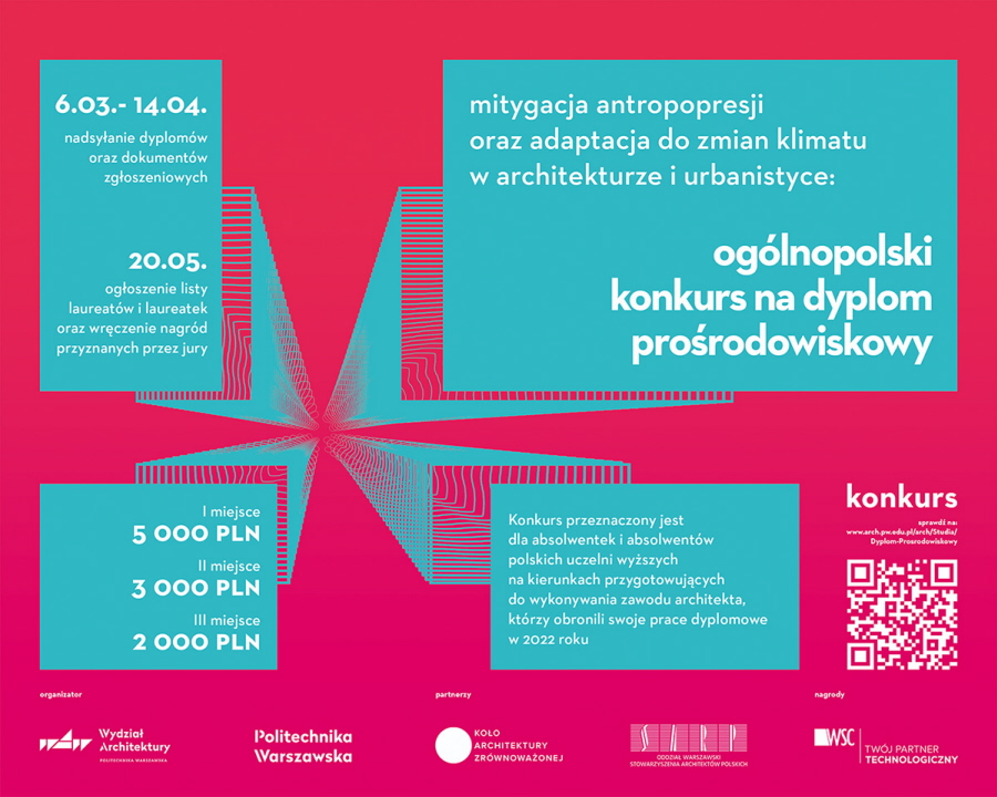 Szczegółowe informacje oraz Regulamin Konkursu dostępne są na stronie: https://www.arch.pw.edu.pl/arch/Studia/Dyplom-Prosrodowiskowy