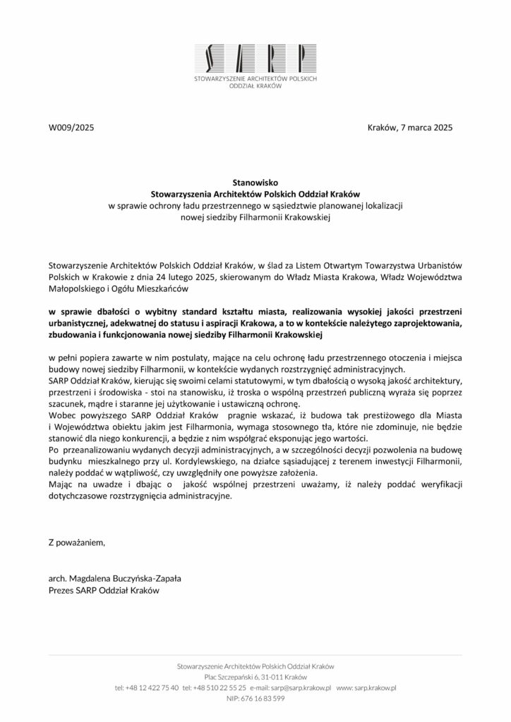 List Otwarty Towarzystwa Urbanistów Polskich Oddział w Krakowie