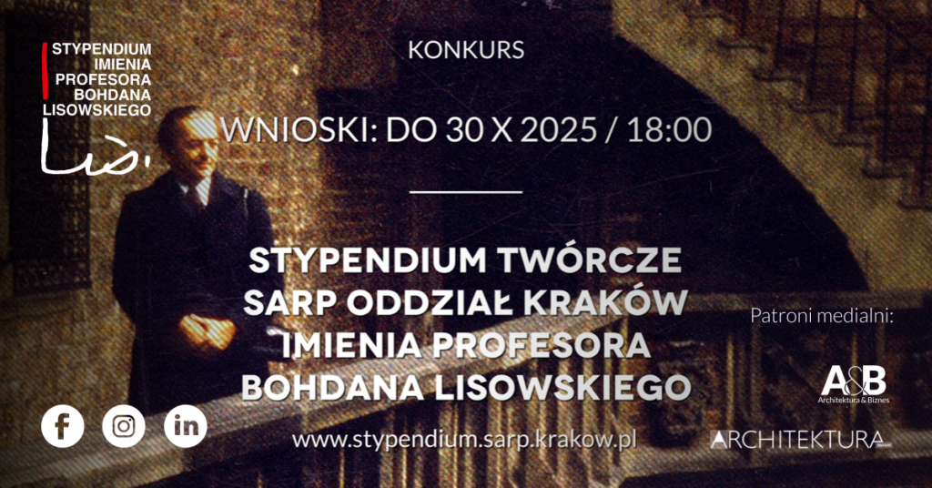 Serdecznie zachęcamy do aplikowania w 15. edycji Stypendium Twórczego SARP Oddział Kraków im. prof. Bohdana Lisowskiego.