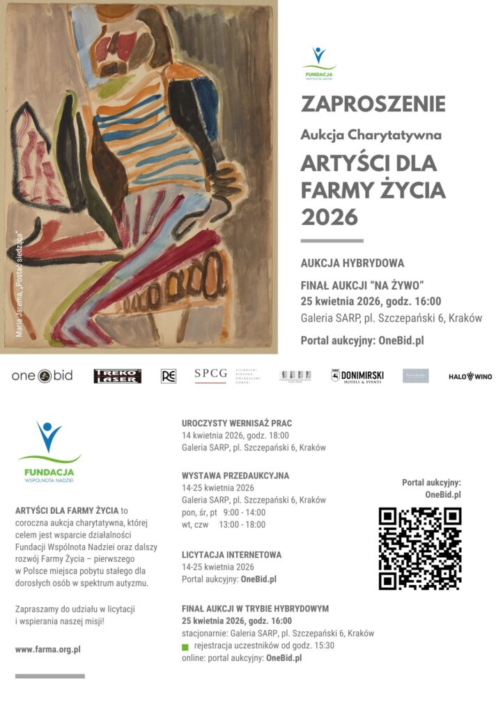 Fundacja Wspólnota Nadziei oraz Stowarzyszenie Architektów Polskich serdecznie zapraszają na UROCZYSTY WERNISAŻ wystawy przed Aukcją Charytatywną ARTYŚCI DLA FARMY ŻYCIA 2026.