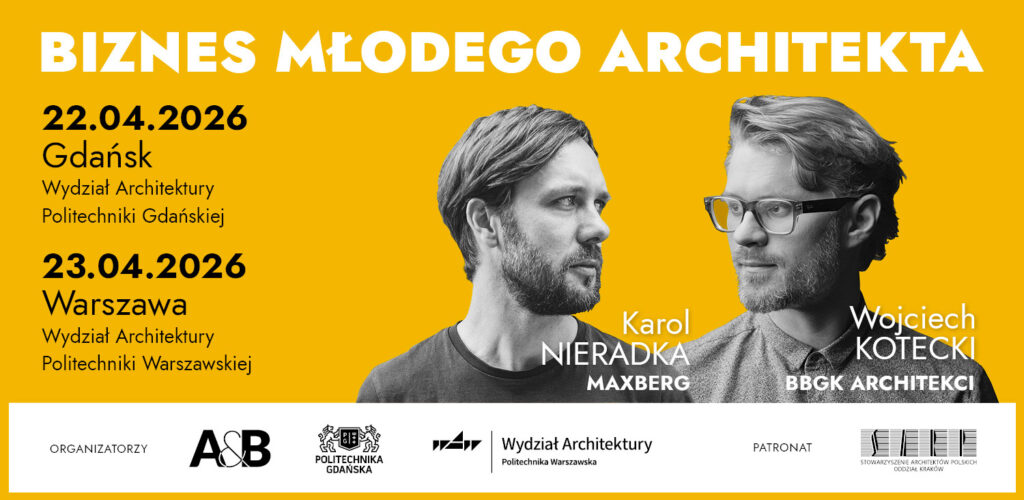 Architektura & Biznes zaprasza na spotkania z cyklu BIZNES MŁODEGO ARCHITEKTA. Jak naprawdę wygląda start w zawodzie? jak odpowiedzialnie wyceniać swoją pracę? jak budować relacje z klientami i inwestorami oraz jak świadomie funkcjonować w realiach rynku? Tematem przewodnim będzie biznesowy wymiar pracy architekta — prowadzenie pracowni oraz łączenie ambicji twórczych z realiami rynku.