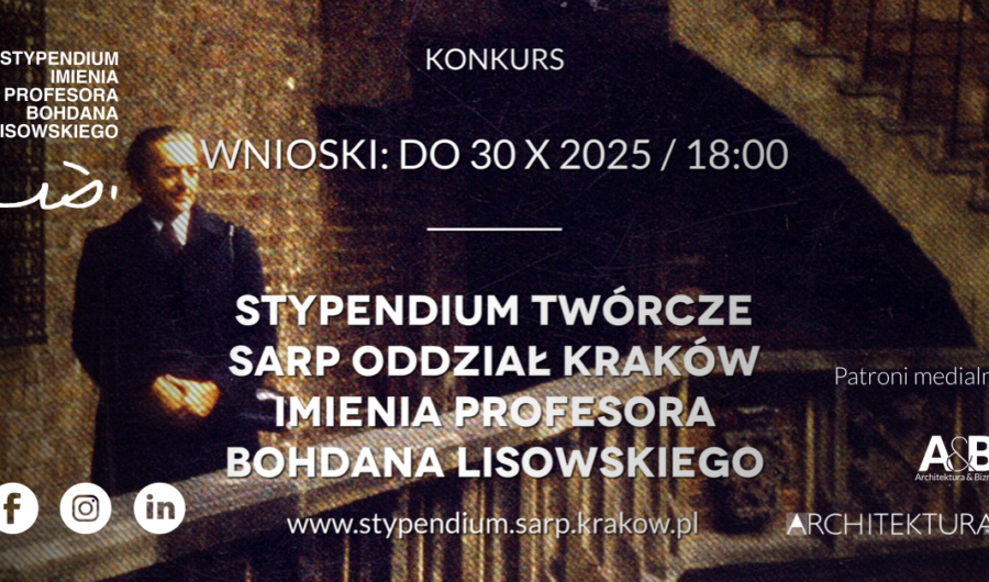 Drodzy Studenci kończący stopień inżynierski na Wydziałach Architektury krakowskich uczelni wyższych! Serdecznie zachęcamy do aplikowania w 15. edycji Stypendium Twórczego SARP Oddział Kraków im. prof. Bohdana Lisowskiego. Oto […]