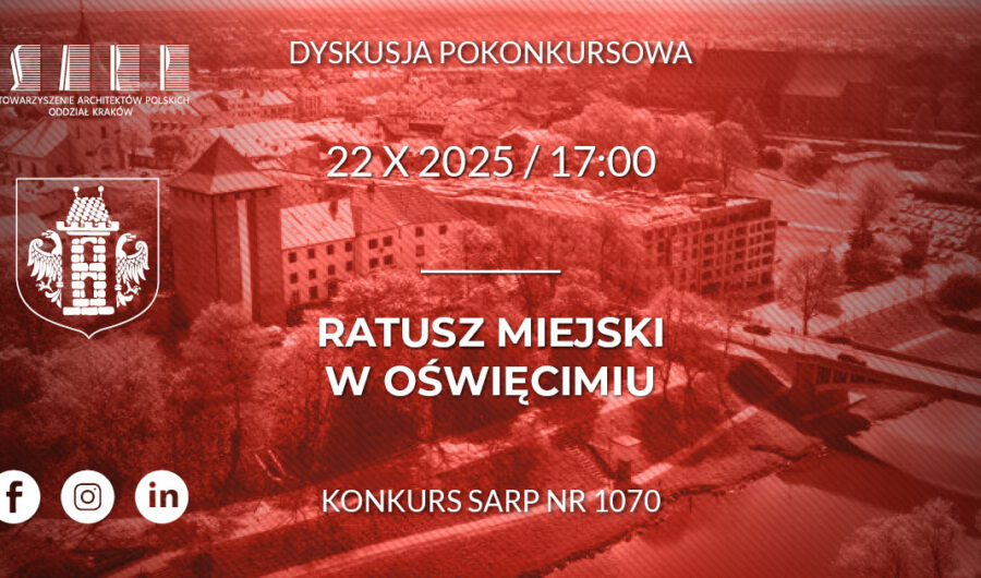 Miasto Oświęcim oraz Stowarzyszenie Architektów Polskich (SARP) Oddział Kraków zapraszają na publiczną prezentację nagrodzonych prac w konkursie na koncepcję architektoniczną budowy Ratusza Miejskiego w Oświęcimiu oraz na dyskusję […]