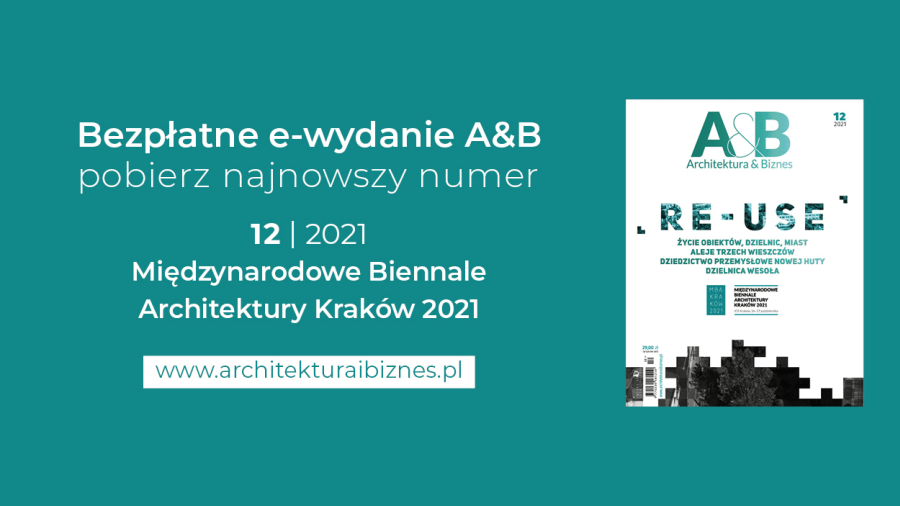 Najnowszy numer miesięcznika „Architektura & Biznes” 12|2021 poświęcony Międzynarodowemu Biennale Architektury Kraków 2021 można pobrać bezpłatnie na stronie internetowej: www.architekturaibiznes.pl/bezplatne-e-wydanie W numerze m.in. obszerne opracowania na tematy, które były […]